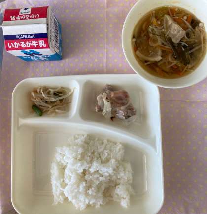 ソーキ汁には、切り昆布が入っていたのですが、1年生のある児童が「昆布は、嫌いやぁ!」と言うと、隣の席の児童が「こんぶが入ってるから、美味しいねんで!」と言っていました。