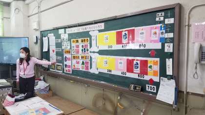 今回の学習は、ほねをじょうぶにする食べものについて。3年生までに学習した、赤・黄・緑のはたらきをする食べもののことは、きちんと覚えていました。