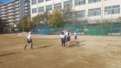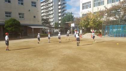 今回は、フラフープをコートの中において、ゴールを作りました。