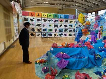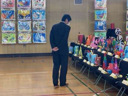 東淀川区長の西山 忠邦(にしやま ただくに)さんが、作品展に来てくださいました。