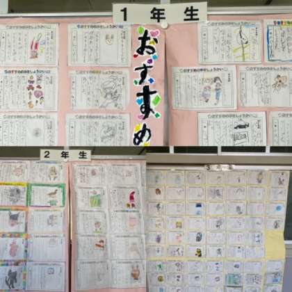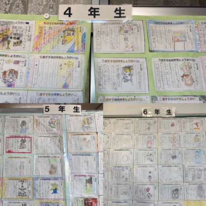 全校児童が自分のお気に入りの本を紹介するためにカードを作成しました。各学年、とても丁寧に書かれていて廊下を通る児童が興味深く読んでいます。