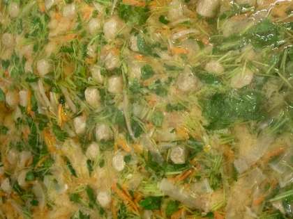 「つみれ汁」は、しょうが汁、料理酒で下味をつけたいわしだんごと、だいこん、ごぼう、にんじん、青みにみつばを使用しています。