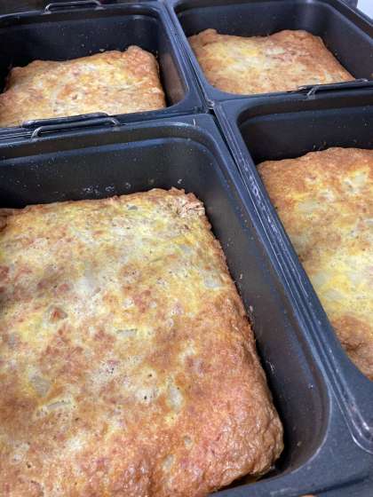 「ツナポテトオムレツ」は、液卵、ツナ、じゃがいもを使用し、焼き物機で焼きます。