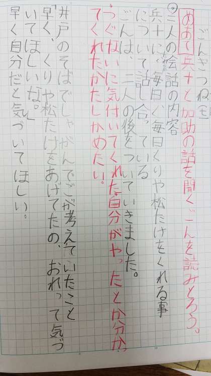 ごんは見つからないように気を付けながら、兵十と加助のあとをついていきます。