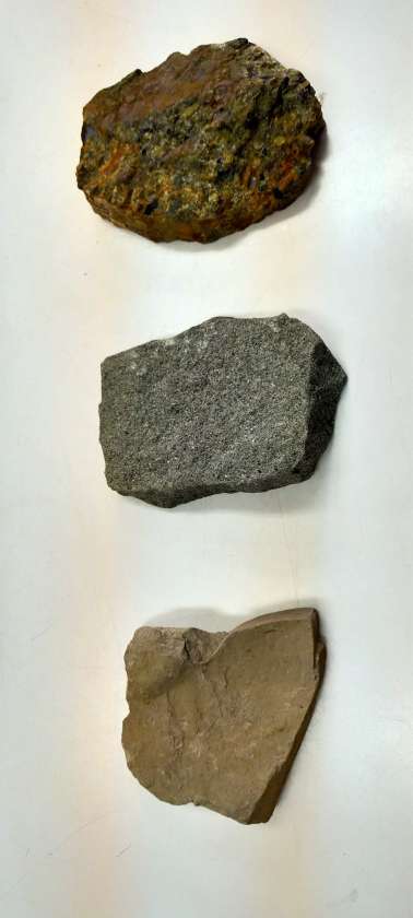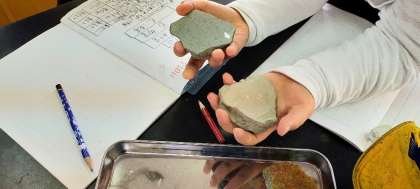 「これから、地層の中から取り出した岩石を3種類くばります。違いを見つけましょう」