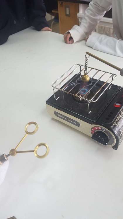 さて、今回は、金属の球を温めるとどうなるのかを調べます。