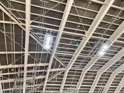 講堂の照明がLEDに変わりました。今までの水銀灯は完全点灯するまでに時間がかかっていましたが、LEDはすぐに点灯して明るさも文句なしです!