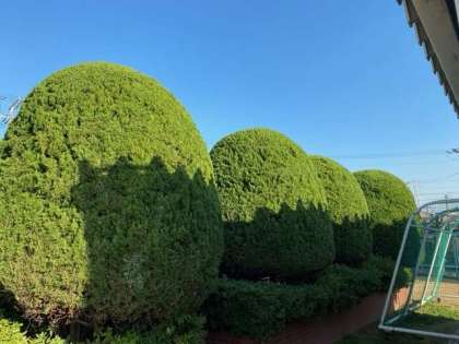 管理作業員さんが綺麗に木を剪定してくれました。大桐小学校は木が多く、順番に剪定しながら学校を一周すると最初に剪定した木をまた剪定しなければいけないくらいの量です。