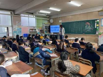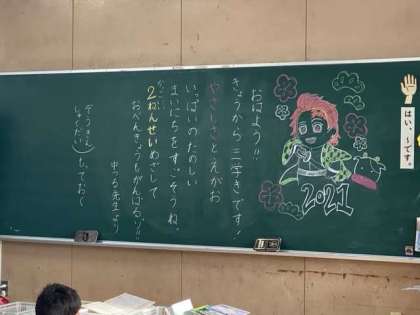 教室には担任の先生からのメッセージも書かれており、子どもたちはじっくりと読んでいました。