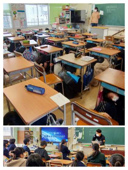 今日は、全学年で「避難訓練」と「防災学習」が行われました。学校で災害があった時、全員の子どもの命を守るため、このような実践的な避難訓練を積み重ねていきます。