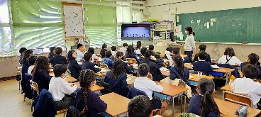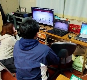 5時間目、久山先生と薮本先生が、放送室から各教室へビデオを放映しています。クラブ発表会です。何日間かかけて給食の時間を使って、各クラブの活動を紹介してきました。