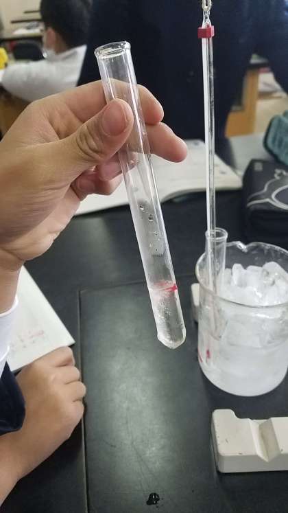 ビーカーの中に指を入れて、冷たさも体感しました。