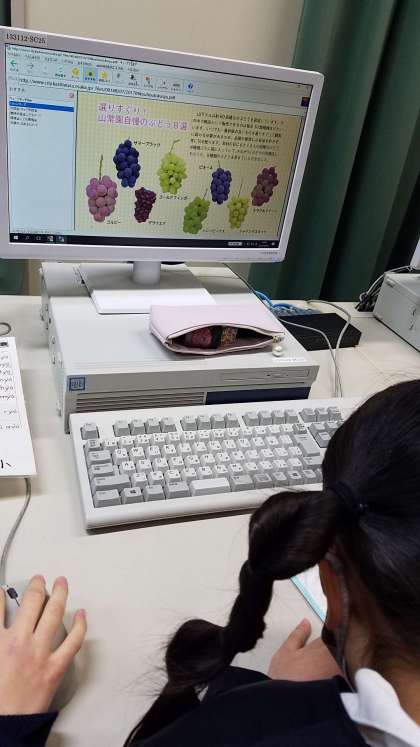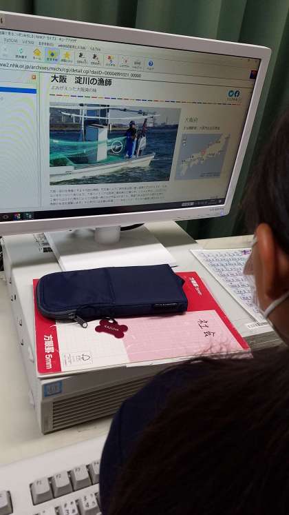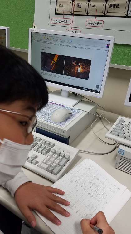 これまでに学習した単元を振り返って、さらに詳しく調べたいことをパソコンで探しています。