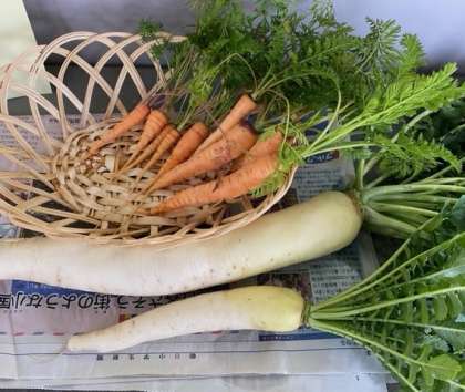 大根とニンジンが収穫できました。冬の間に大きく育っていました・・・。