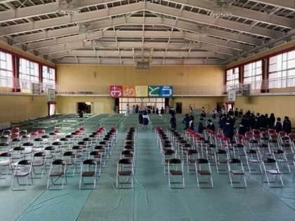 今日は5年生が6年生のために卒業式の準備として、会場を設営しました。