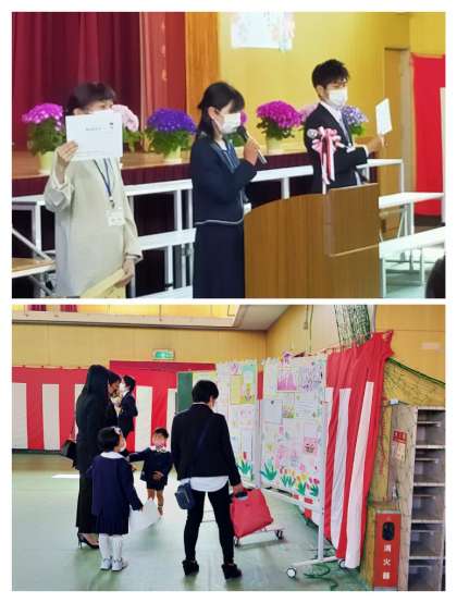 さわやかな天候の中、第58回入学式を行いました。学年保護者会、教室確認の後、保護者に手を引かれながら嬉しそうに帰っていきました。