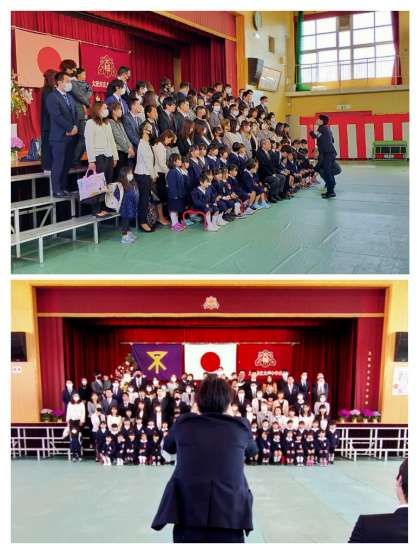 ぴかぴかの1ねんせいのみなさん、あしたからげんきにがっこうにきてくださいね。こうちょうせんせいのおはなしにあったように、かしこく、やさしく、けんこうにすごしましょう。