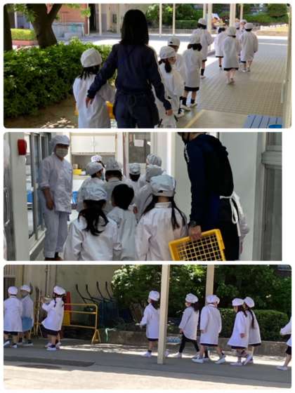 今日から、1年生の給食当番が代わりました。初めての当番ですが上手に運んでいました。