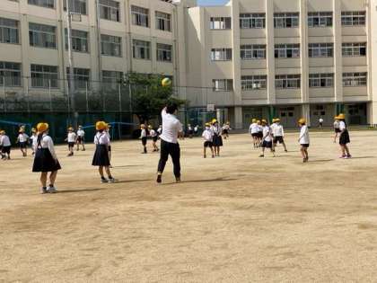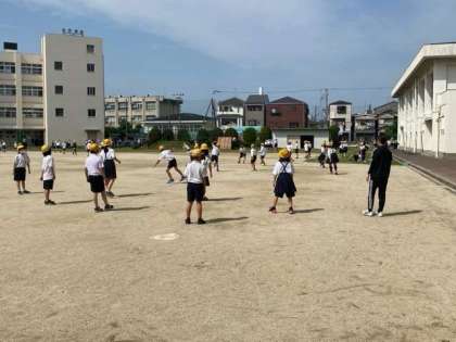 夏のような気温とギラギラ照り付ける太陽の下、ドッジボールを楽しむ児童が多かったです。担任やサポーターの先生も一緒に遊んでいる姿が見られました。これからどんどん暑くなりますので、水筒に十分な量のお茶を入れてきてください。