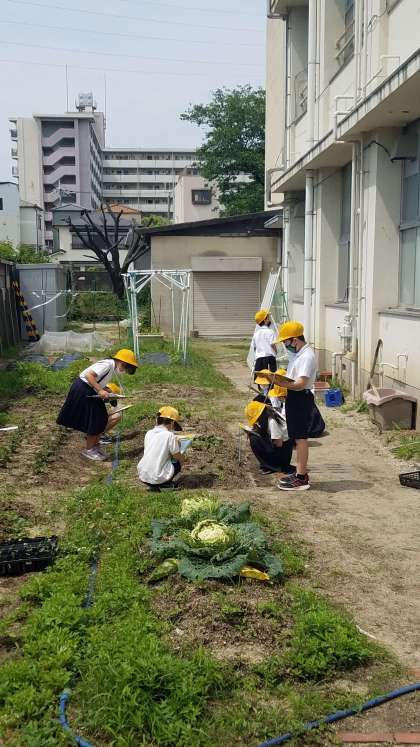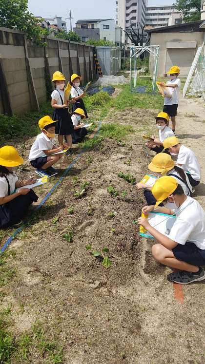 みんなで観察すると密になるので、二班ずつ時間交代で観察をします。
