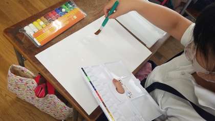 待ちに待った、絵の具を使っての学習が始まります。