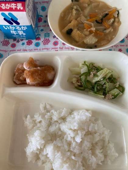 今日の野菜炒めには【ツナ】が入っています。給食で使っているツナの缶づめはキハダマグロという種類のまぐろを材料にしています。