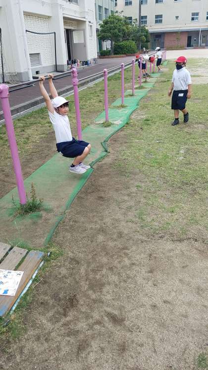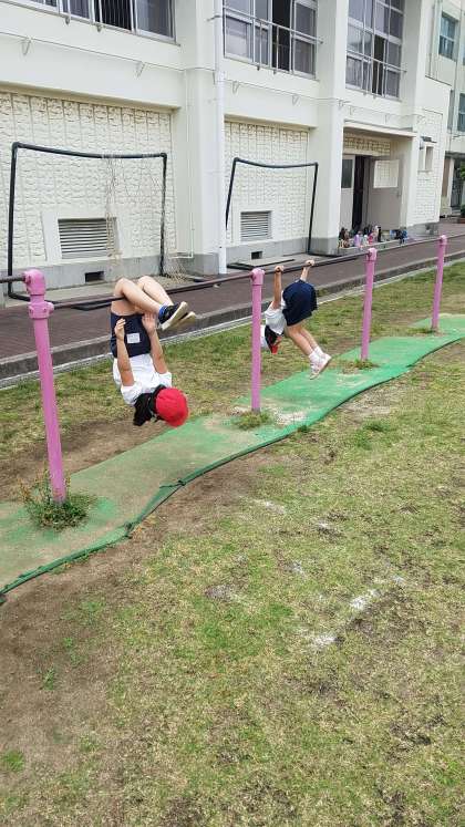 子どもたちは、元気に鉄棒に挑戦します。