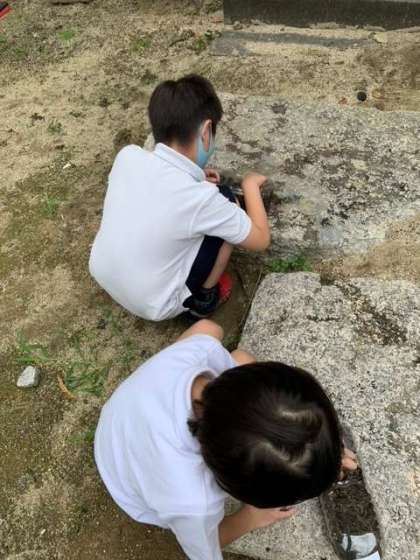 写真は、土に植えている様子です。子どもたちは慎重に作業をしていました。