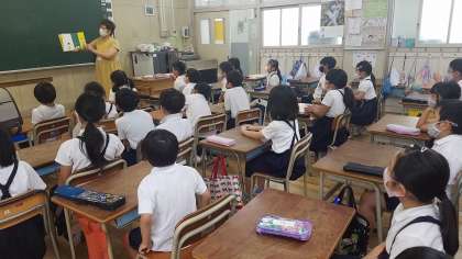 読書タイムの水曜日。今回は、図書ボランティアの方々が、読み聞かせに来てくださいました。