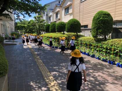 1時間目の後の休み時間になると、アサガオの水やりに行く子どもたちの様子がよく見られます。