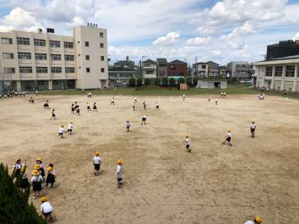 運動場に行ける時間が学年ごとに決まっているため、運動場で遊べるときはほとんどの子どもが外に行き、元気に遊んでいます。