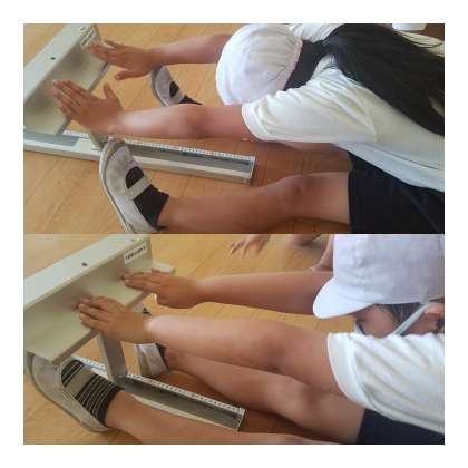 そして、スポーツテストの長座体位前屈の測定もしました。