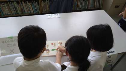 ブックトークで聞いた話の続きが気になり、その本を図書室で探し、読んでいました。