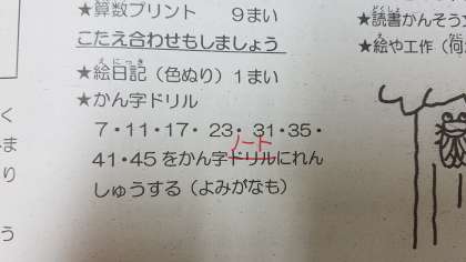 7・11・17・23・31・35・41・45をかん字ドリルにれんしゅうする