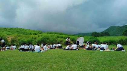 学級写真の撮影と待ちに待った昼食タイム!嬉しそうです。