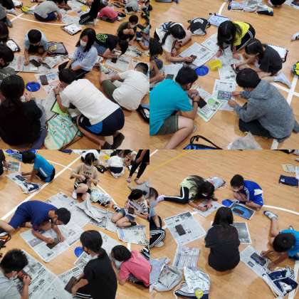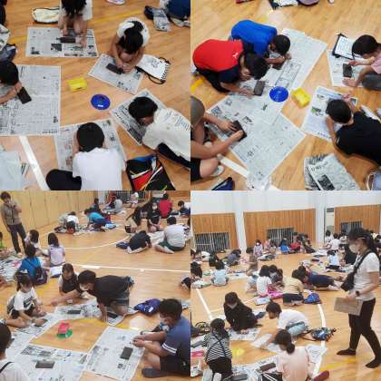 真っ黒なキャンパスにカラフルな絵の具で絵付けしていきます。やり直しが出来ないので、みんな真剣です。