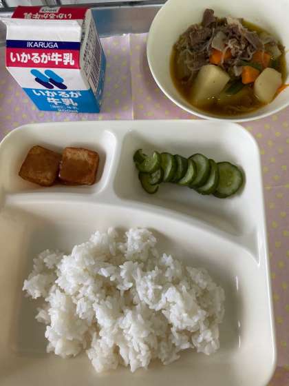 「肉じゃが」は、牛肉とじゃがいもを使用したご飯がすすむ献立で、児童にも大人気です。