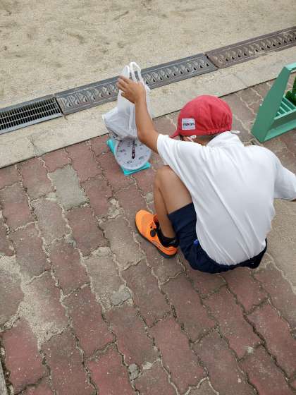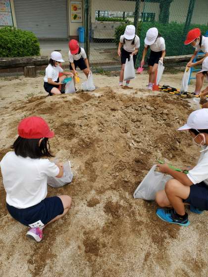13日月曜日は、算数科「重さ」の学習で、砂を使って1kgを作る学習をしました。