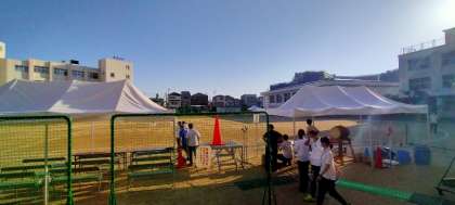 とてもいい天気です。体育参観準備OKです。保護者の皆様、感染症対策の関係でいろいろと制限の多い体育参観ですが、お子様の元気な姿をぜひご覧ください。