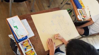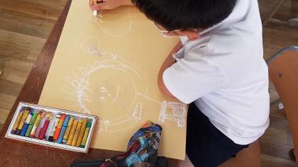 子どもたちは一生懸命にがんばったことを思い出して、画用紙にその時のことを描いていきます。
