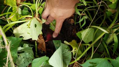 葉っぱが黄色く枯れていくと収穫の時期です。