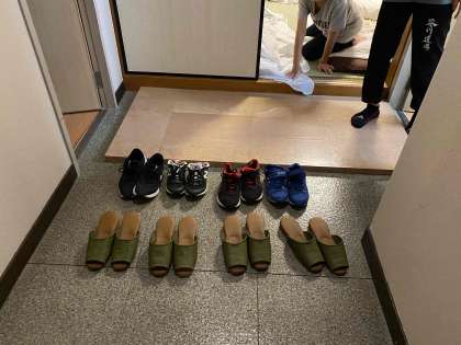 22時就寝となります。ある男子の部屋をのぞくと履き物が綺麗に並べてあり素晴らしいです!