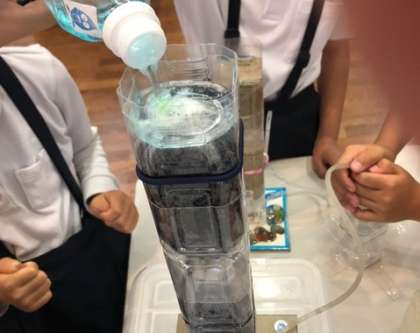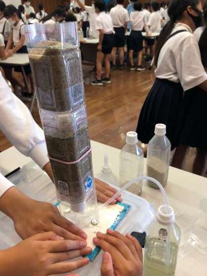大阪市水道局のスタッフの方々が実験も入れながら工夫して、わかりやすく教えてくださいました。疑問に思ったことをどんどん調べたり、まとめたりする「社会科を学ぶ力」を身につけるのにはうってつけの単元です。