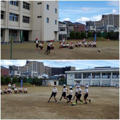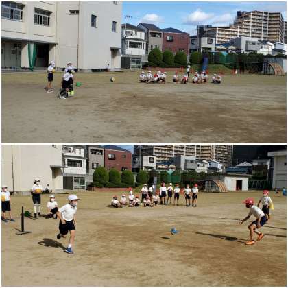 体育科では、「ベースボール型ゲーム ティーボール」をしています。