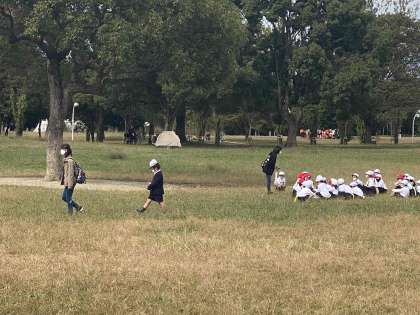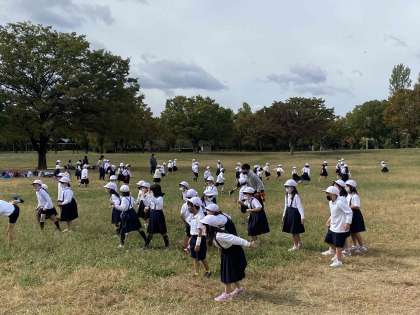 1年生 広場で走り回っています