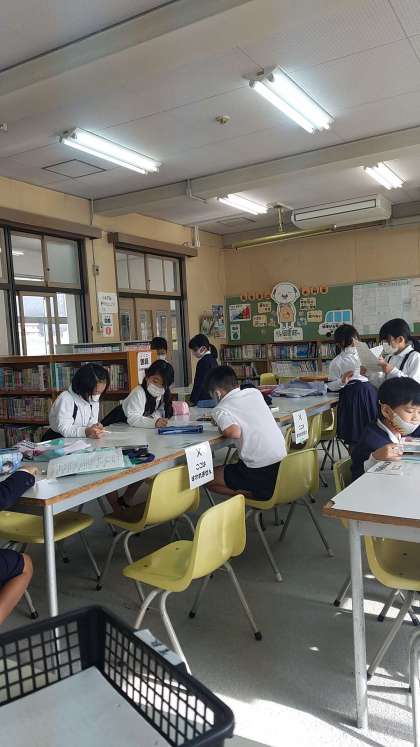 今日の図書の時間には、図書館クイズに挑戦しました。