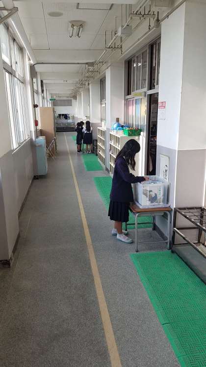 子どもたちは、廊下の図書に気付いたようです。