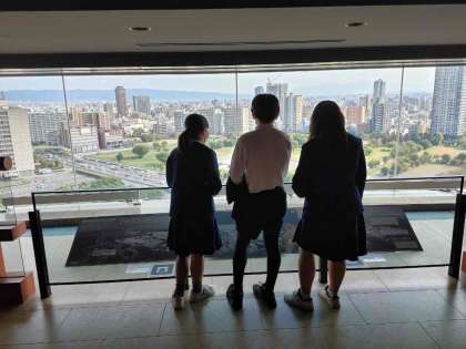 歴史博物館の見学がスタートしました。10階までEVで一気に上がって、降りながら見学します。一階に近いほど近代になっていきますが、子どもたちはやはり10階の古代フロアが楽しいようです。