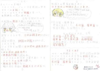 6年1組は、毎週月曜日、自主学習ノートの提出日です。子どもたちは、自分の調べたいことや授業の復習などをノートにまとめています。1組では、歴史の学習をまとめることが流行っているみたいです。イラストを入れるなどの工夫をしている子も多いです。