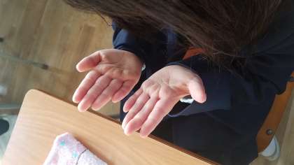 せいけつしらべのあと、手洗いの仕方を確認しました。